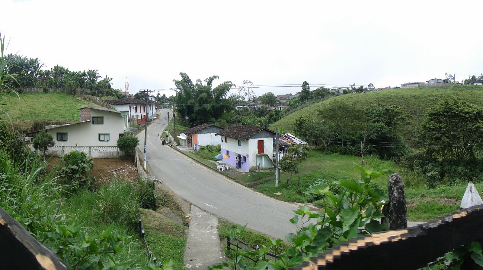 La casa de balcón de San Luis, tienda de don Teodoro Osorio, donde se inicia el camino del “trazado”, hacia la Coralia, las vueltas de Rascaderal y el primer camino hacia Buenos Aires a la izquierda; a la derecha la recta y la entrada al “Prado” de don Germán Mejía, de donde todas las mañanas salía la yegüita “Chumilas” de cabestro de un hijo de don Gustavo Mejía, a vender la leche al pueblo.